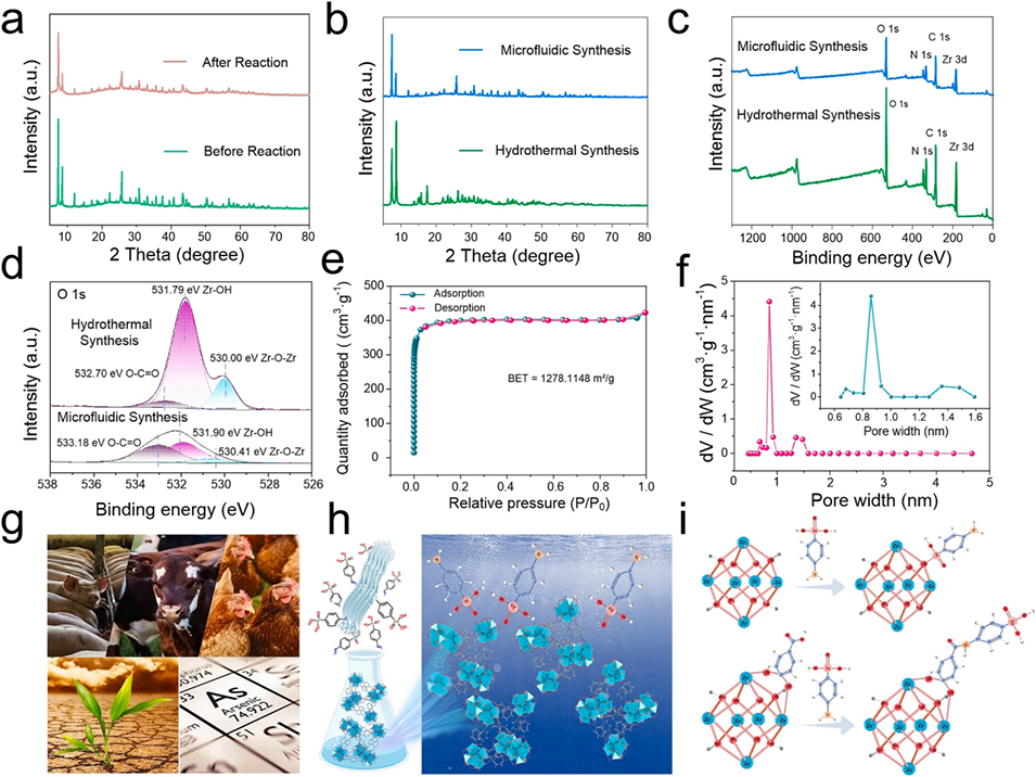 4、该微流控制备方法为高效、低成本、规模化生产MOFs材料提供了可行路径,在有机砷污染治理方面具有广阔应用前景。