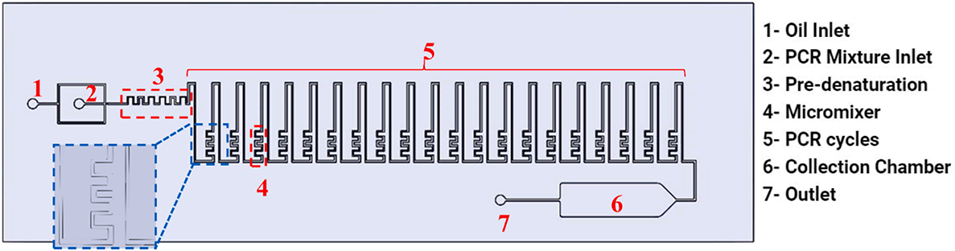2、芯片集成21个循环,每个循环内置微混合器,首次研究并证实了微混合器可提升PCR效率与特异性。