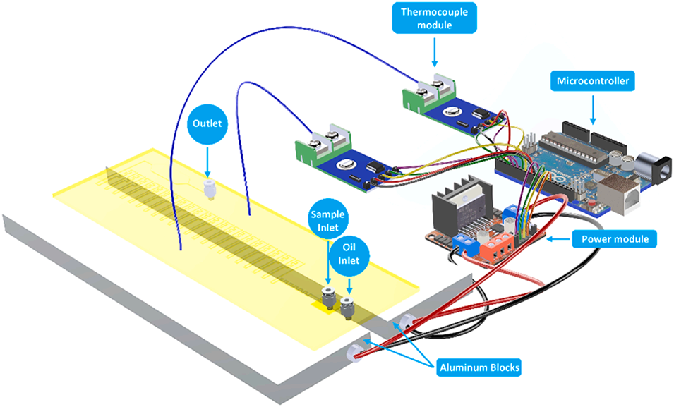 1、本研究提出了一种低成本、快速检测的微液滴数字PCR系统。该系统包含3D打印的微流控芯片、PCR温控装置及荧光光学检测模块。