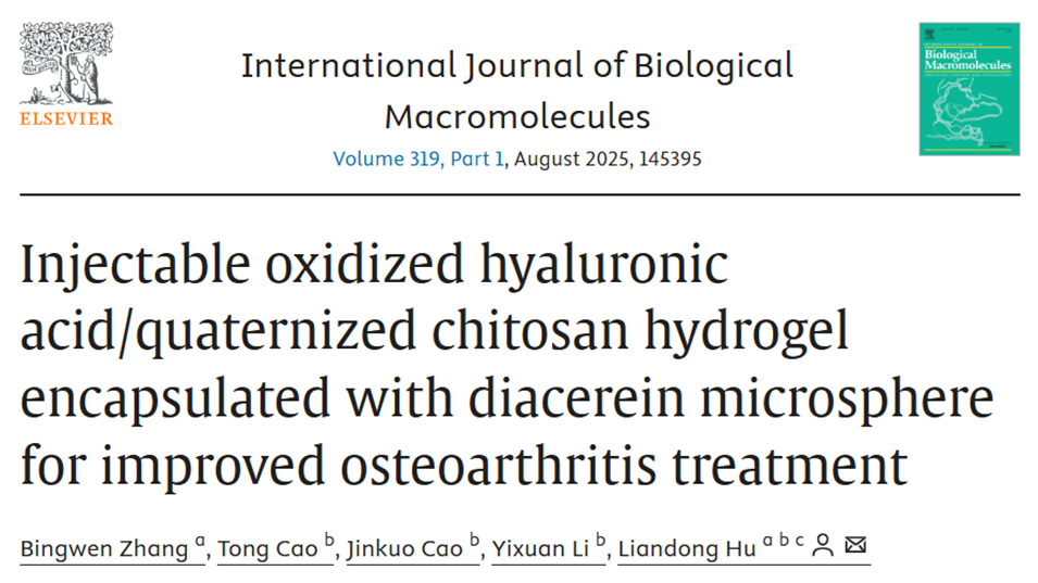 近期,河北科技大学胡连栋教授团队成功开发了一种新型可注射水凝胶-微球复合系统(DIA-MS@gel),用于骨关节炎的精准与持续治疗。该系统通过动态交联的水凝胶封装载药微球,不仅表现出良好的可注射性和自愈合能力,还能在炎症微环境中实现pH响应性的药物长效缓释,显著促进了关节软骨修复并降低了给药频率。相关研究以“Injectable oxidized hyaluronic acid/quaternized chitosan hydrogel encapsulated with diacerein microsphere for improved osteoarthritis treatment”为题,发表于期刊《International Journal of Biological Macromolecules》。