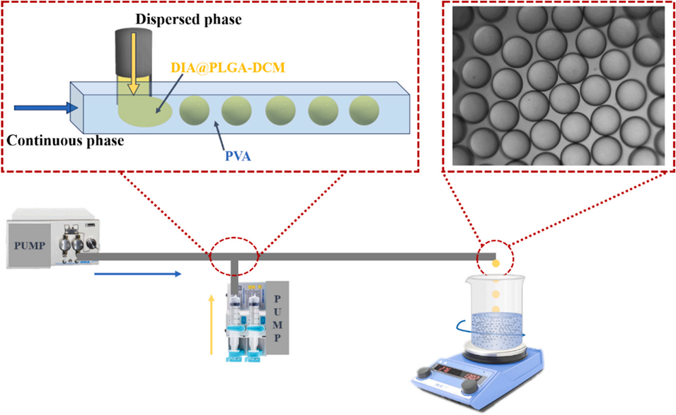 图1:微流控技术制备双醋瑞因微球(DIA-MS)的示意图