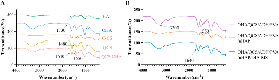 图5:原料(A)与水凝胶(B)的傅里叶变换红外光谱图