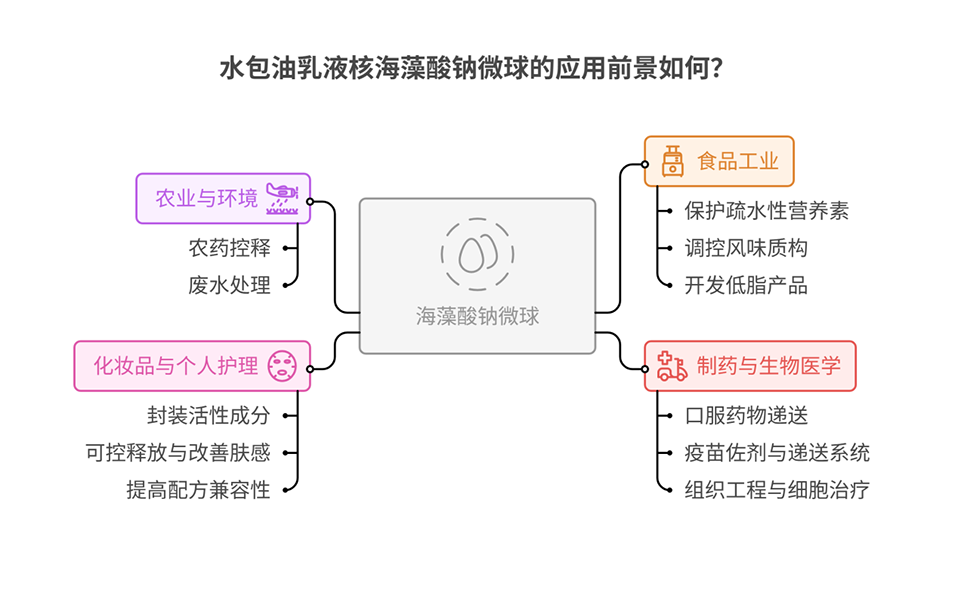 1、本研究开发了一种以海藻酸钠为基材的核壳结构,用于封装水包油(O/W)乳液芯。