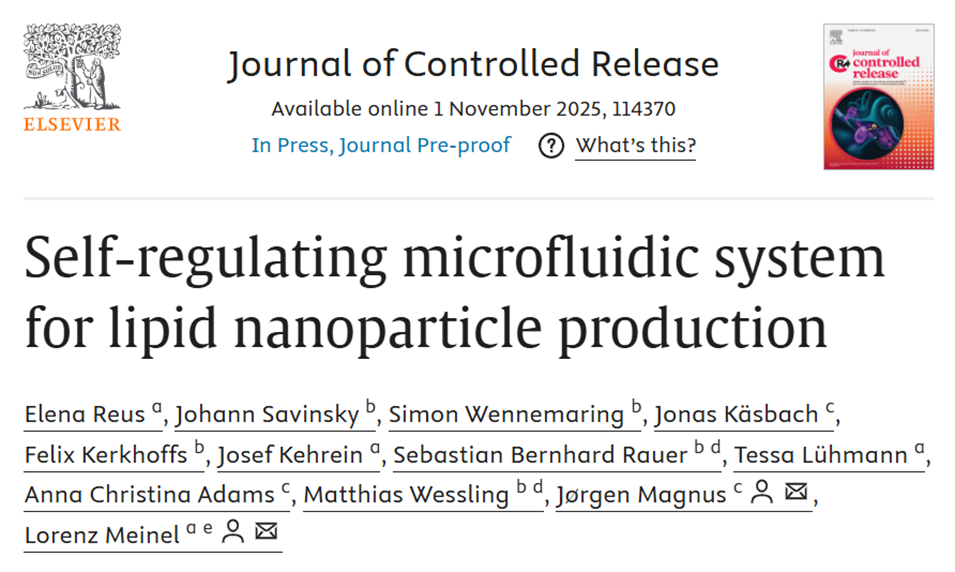 为解决这一难题,德国维尔茨堡大学、亚琛工业大学研究团队将计算流体动力学(CFD)模拟、机器学习与微流控技术相结合,开发出可自动优化脂质纳米颗粒(LNP)制备的自调节系统,该系统能精准调控LNP关键质量属性且无需人工干预,有效解决了传统LNP配方筛选成本高、效率低的问题。相关研究以“Self-regulating microfluidic system for lipid nanoparticle production”为题发表于期刊《Journal of Controlled Release》。