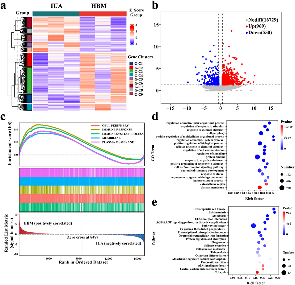 4、在大鼠IUA模型中,HBM显著恢复内膜厚度、增加腺体数量、减少胶原沉积,并改善内膜容受性。转录组分析显示HBM激活了免疫调节与组织修复相关通路。