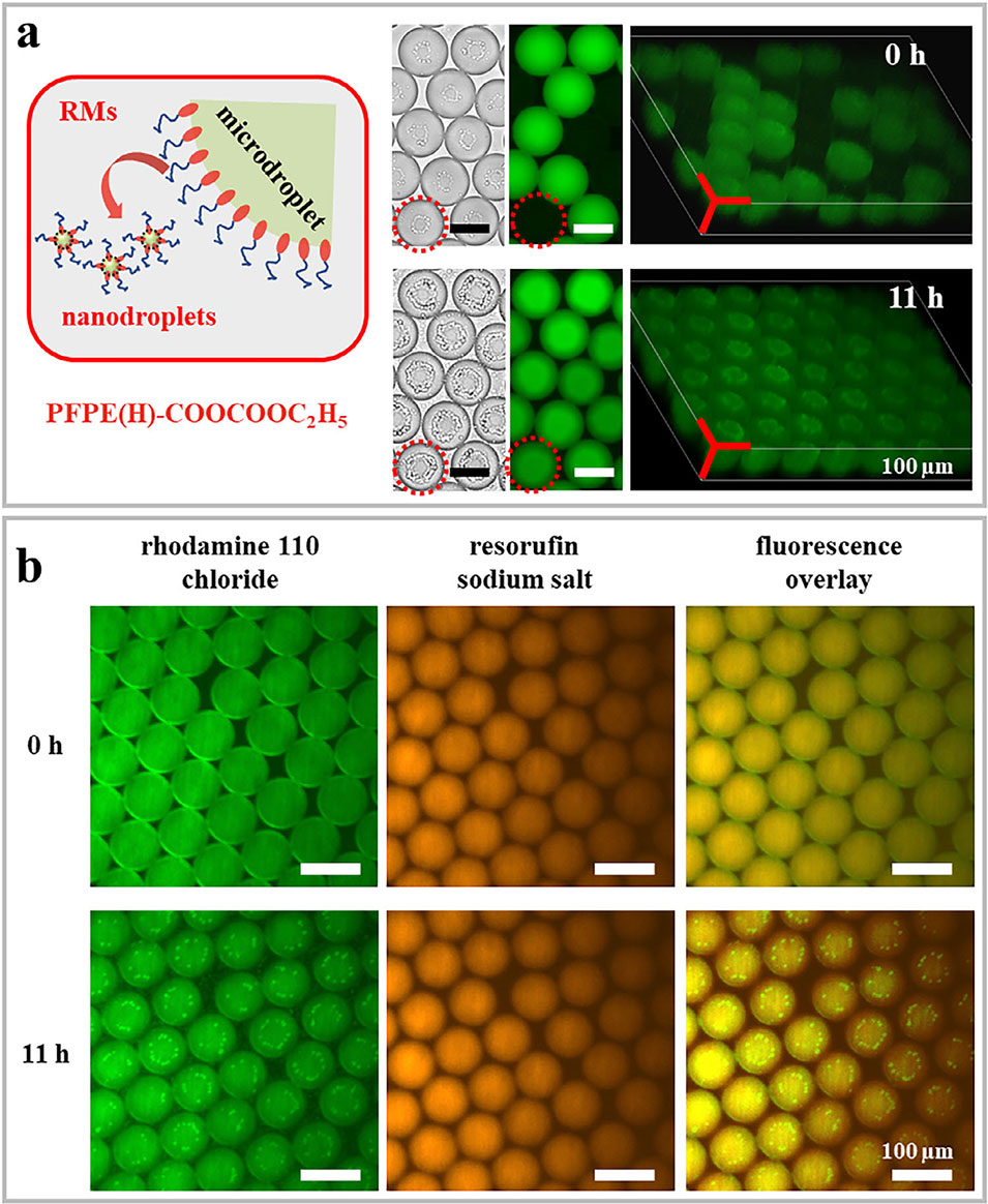 图2. 合成含氟表面活性剂稳定微液滴的稳定性与生物相容性