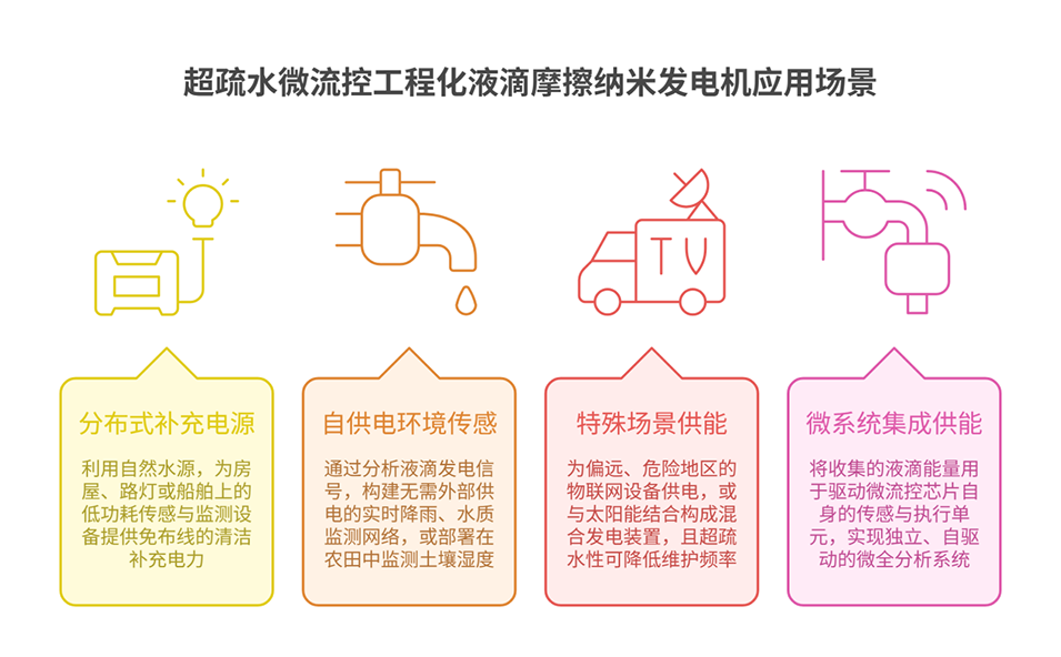 图1:超疏水微流控工程化液滴摩擦纳米发电机及最优液滴尺寸