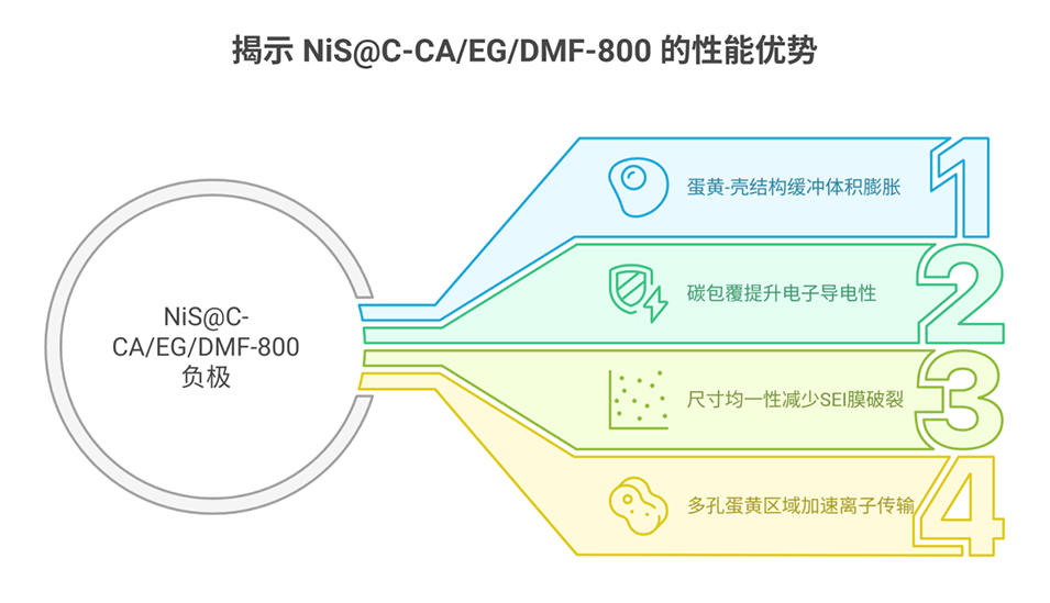 4、以氧化镍为模型材料,成功将其转化为硫化镍@碳微球,作为钾离子电池负极材料表现出优异的电化学性能。该方法为可定制蛋黄壳结构的规模化、高效制备提供了新途径。