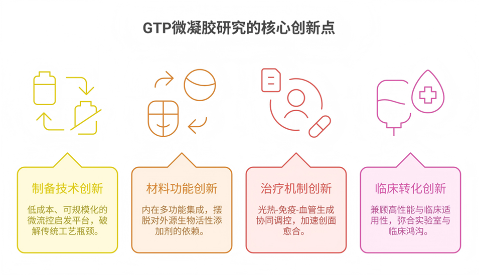 皮肤作为人体最大组织,是抵御外界刺激的天然屏障,但大面积深度创面(如全层烧伤)因炎症反应失调、血管生成受损,存在渗出液过多、感染风险高、愈合延迟等临床挑战。传统水凝胶微球虽在组织再生中展现潜力,但受限于高生产成本、复杂制备工艺、依赖外源生物活性添加剂,且批量乳化法制备的微球尺寸不均一,微流控法产量低、设备复杂,难以临床转化。因此,开发兼具简化制备、内在生物活性的微凝胶成为创面治疗的关键需求。