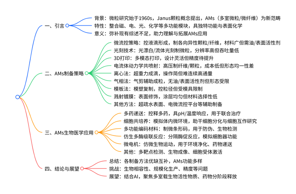 1、该综述围绕各向异性微载体(AMs) 展开,梳理了过去二十年其从制备到生物医学应用的研究进展。