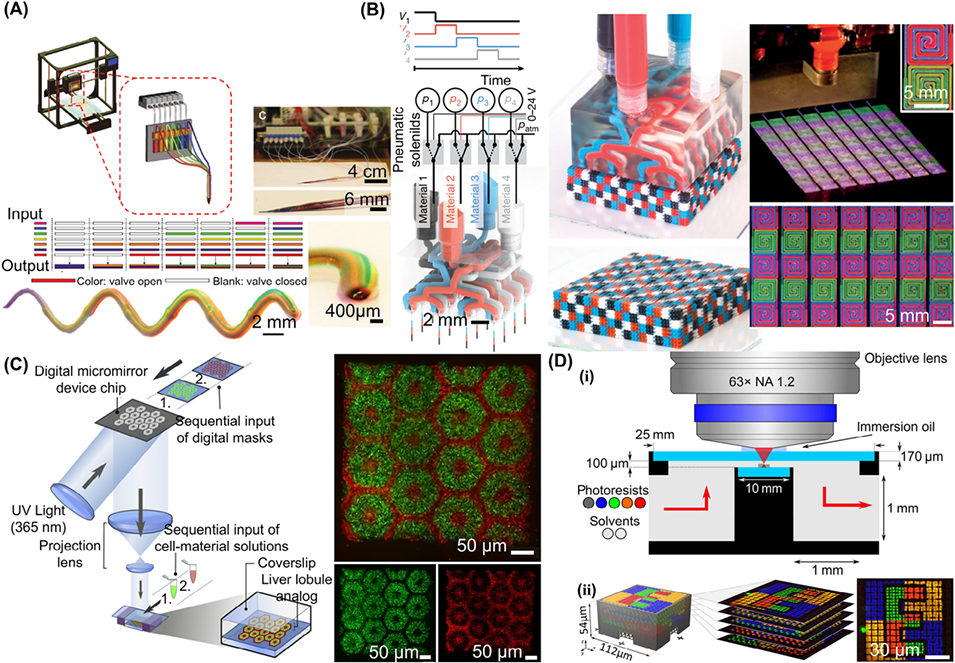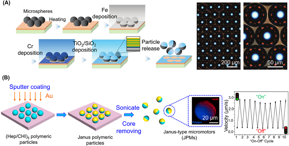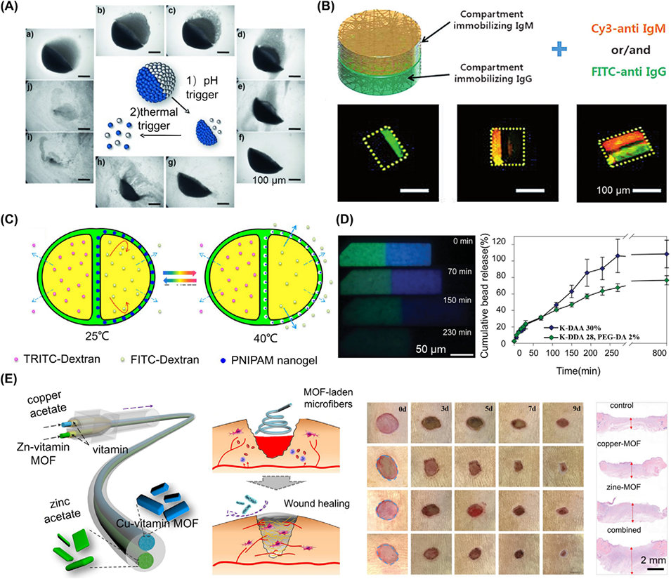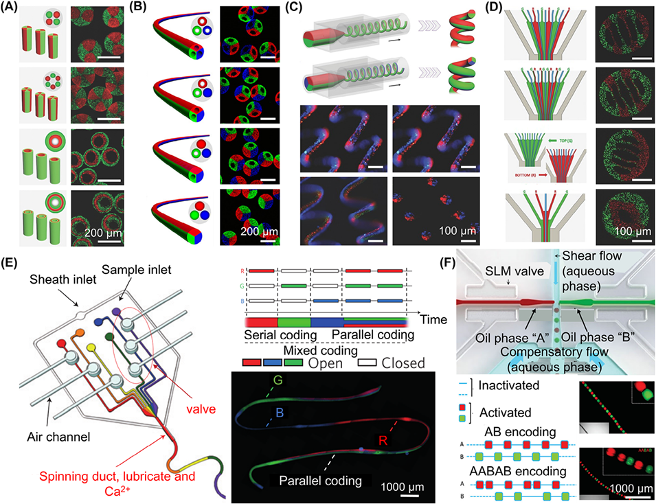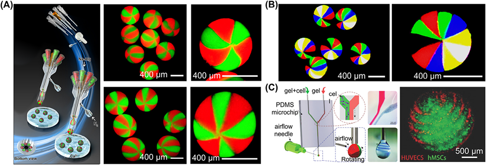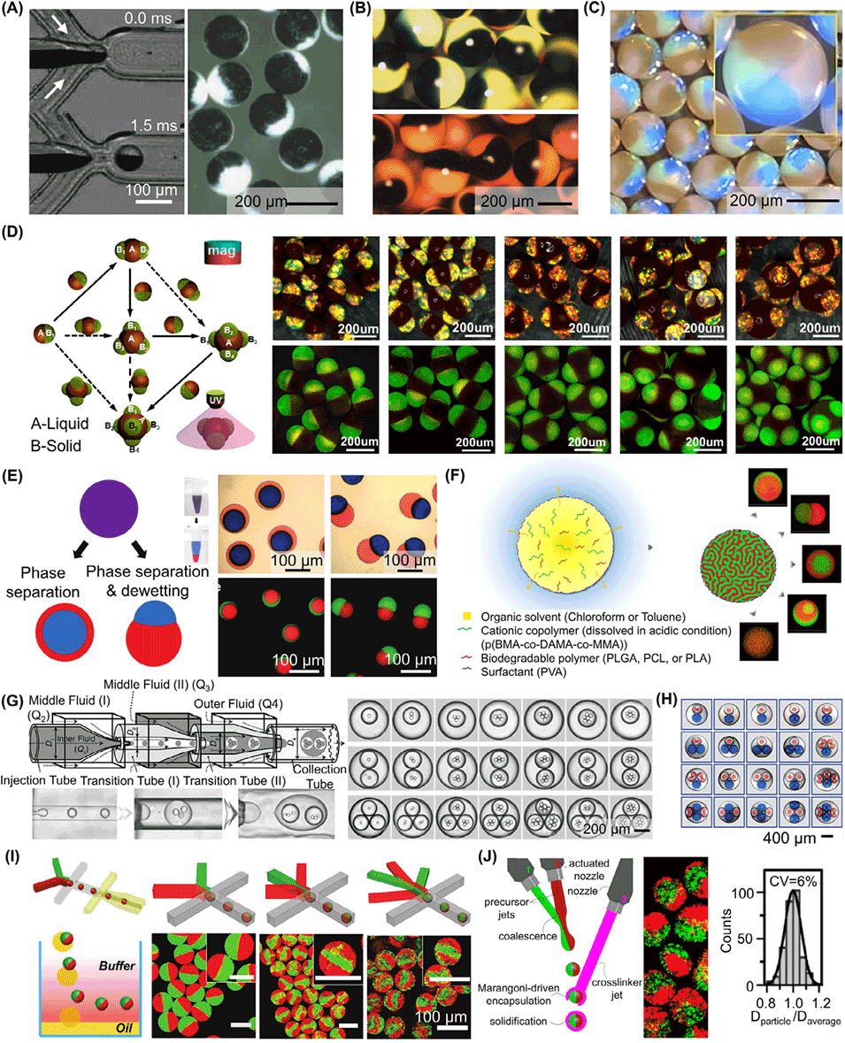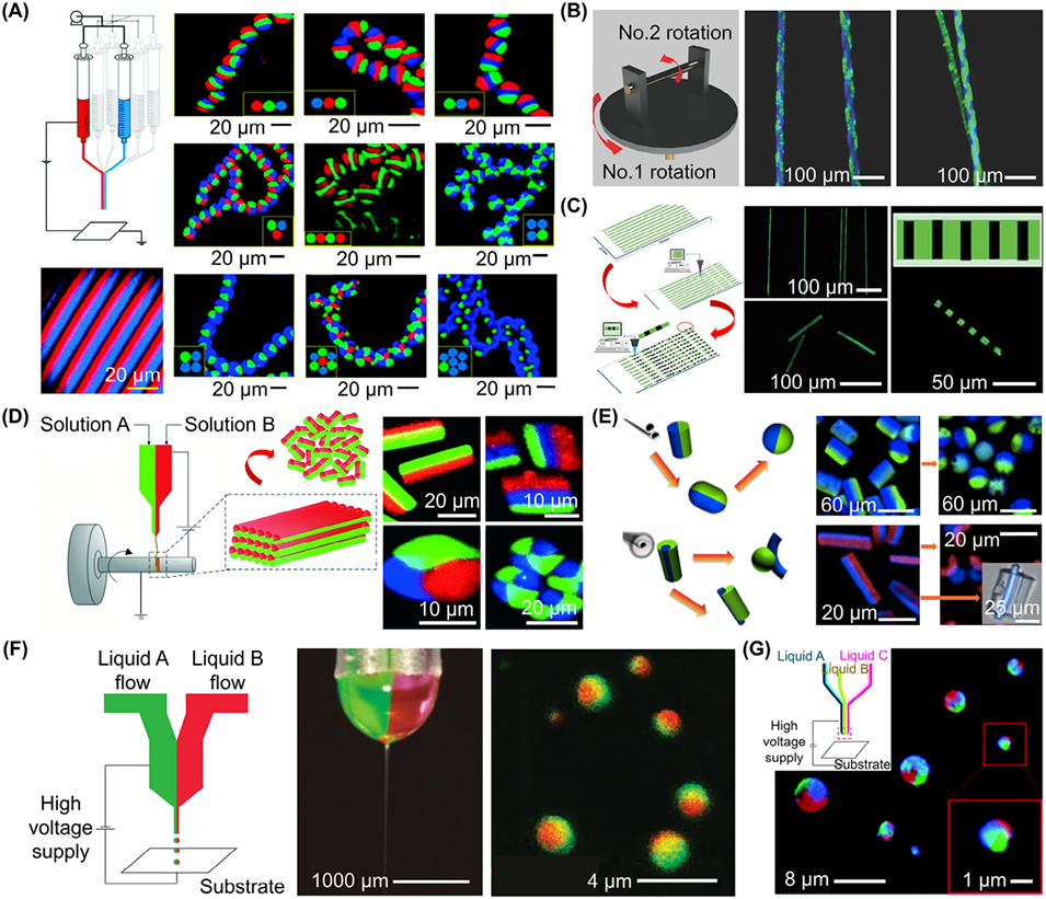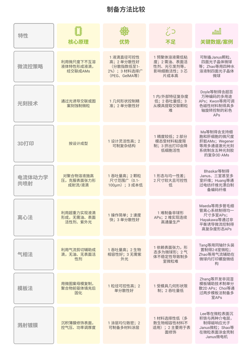 2、重点阐述了微流控、光刻、3D打印、电流体动力学共喷射、离心法、气流辅助剪切法、模板法、溅射镀膜等多种制备策略的原理、优势与不足。