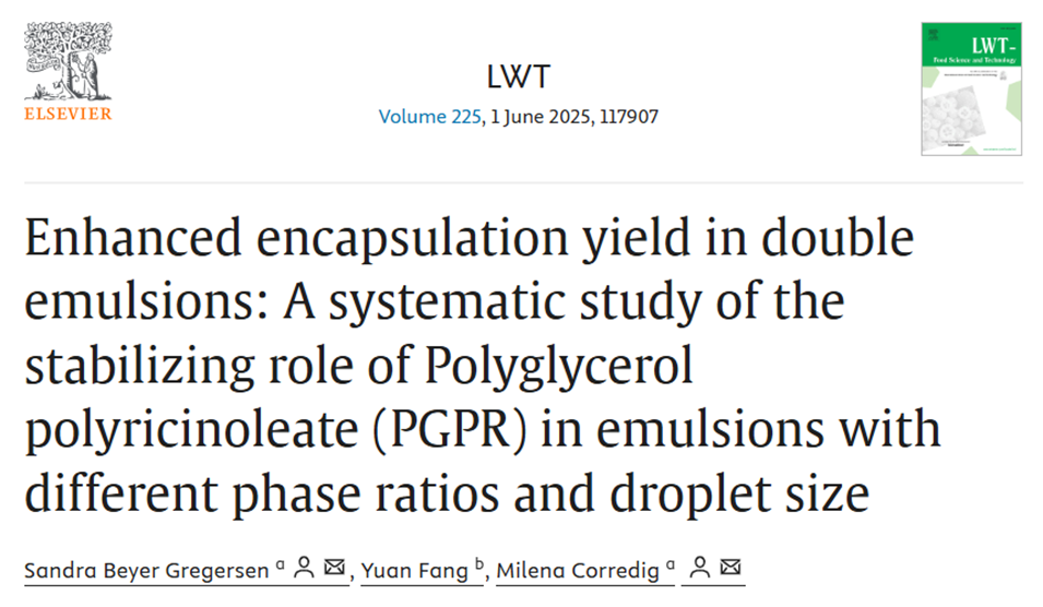 Polyglycerol ricinolester (PGPR) is often used as a functional component in oil-water in water (W/O/W) lotion. Recently, the team of Aarhus University in Denmark systematically explored the stability of PGPR in W/O/W lotion systems with different phase ratios and droplet sizes, providing a key basis for improving the encapsulation efficiency of double lotion. The related research is titled "Enhanced encapsulation yield in double emulsions: A systematic study of the stabilizing role of Polyglycol polyricinoleate (PGPR) in emulsions with different phase ratios and droplet sizes" and was published in the journal LWT - Food Science and Technology.