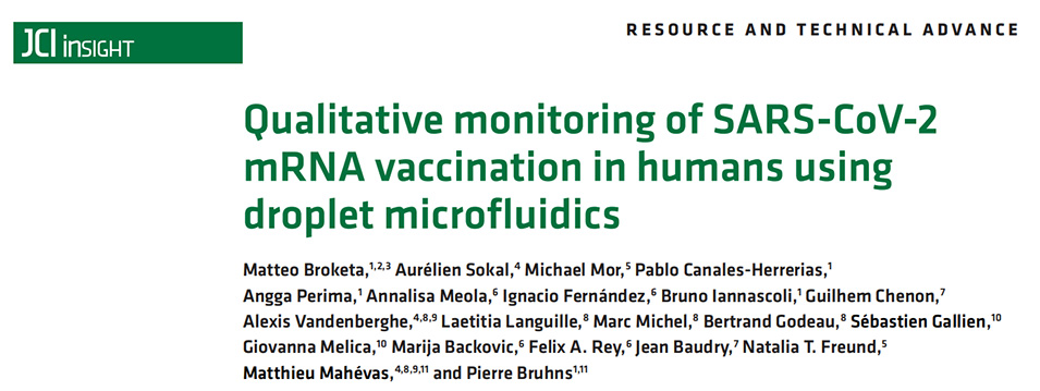 近期,巴斯德研究所的研究人员报告了一种基于液滴微流体技术的单个ASCs动力学分析方法,分析对象是接种了BNT162b2(辉瑞生物技术公司)疫苗的群体。相关研究以“Qualitative monitoring of SARS-CoV-2 mRNA vaccination in humans using droplet microfluidics”为题目,发表在期刊《JCI Insight》上。