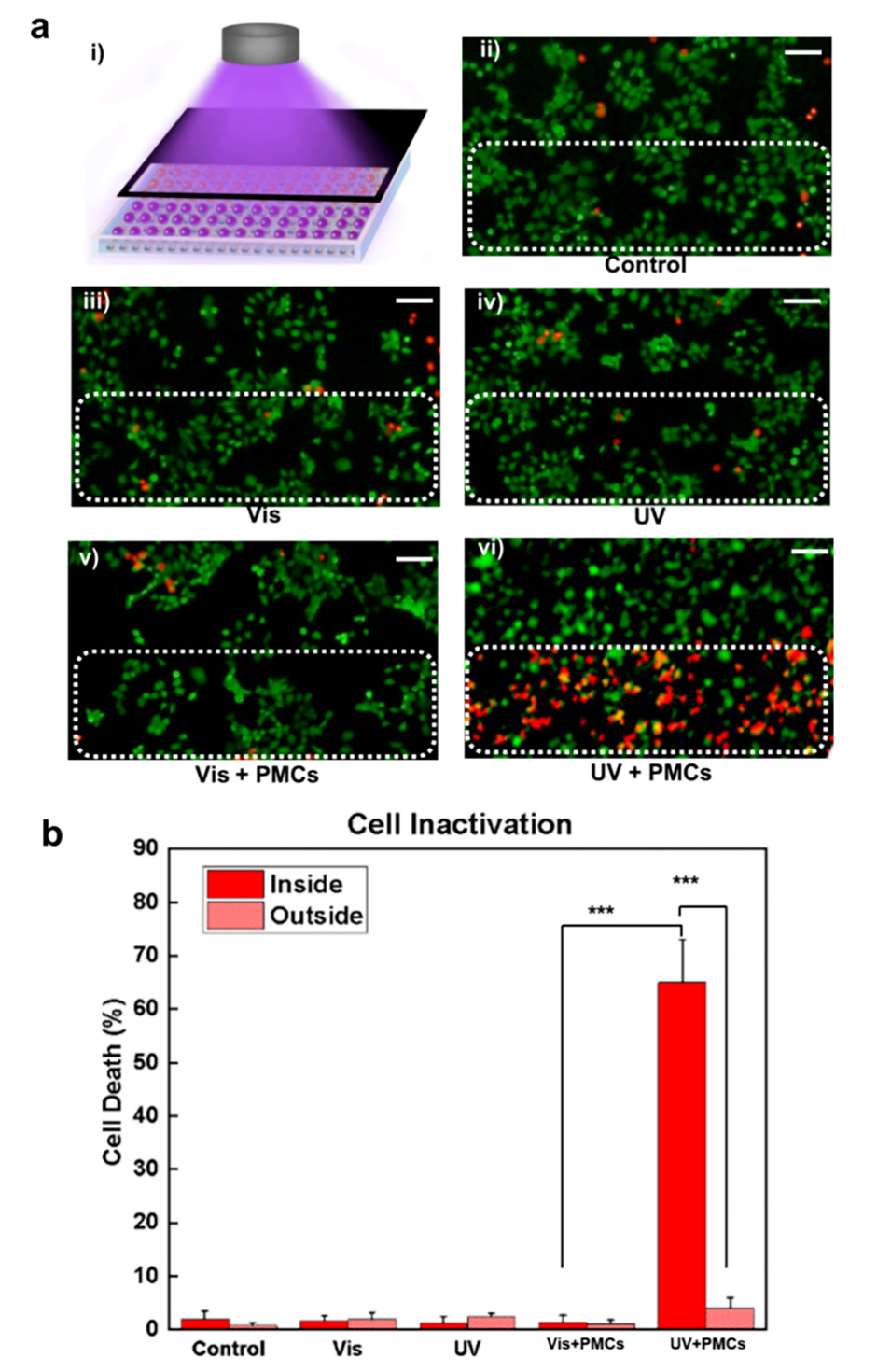 3、精准的癌症治疗:可用于精准的肿瘤细胞治疗,通过选择性的UV照射,实现对肿瘤细胞的精准灭活,展现了治疗效果。