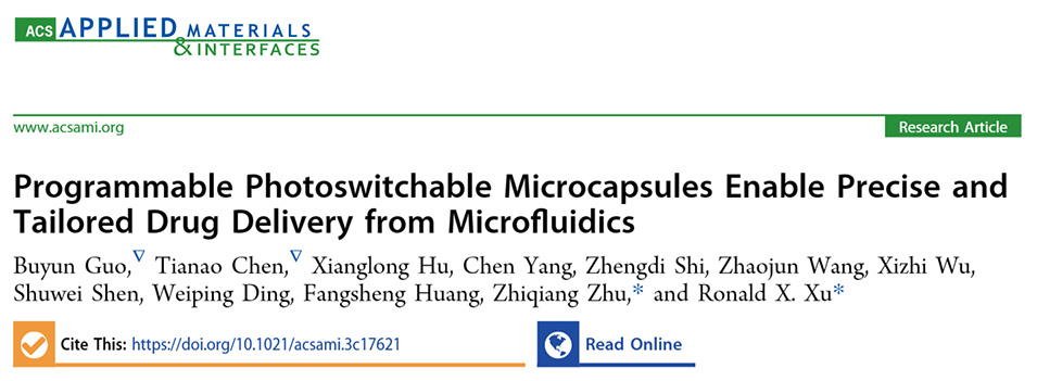 近期,中国科学技术大学徐晓嵘教授团队提出了一种紫外-可见光循环介导的光开关微胶囊(PMC),具有动态渗透性切换能力,可实现精确和定制的药物释放。相关研究以“Programmable Photoswitchable Microcapsules Enable Precise and Tailored Drug Delivery from Microfluidics”为题发表在《ACS Applied Materials & Interfaces》上。