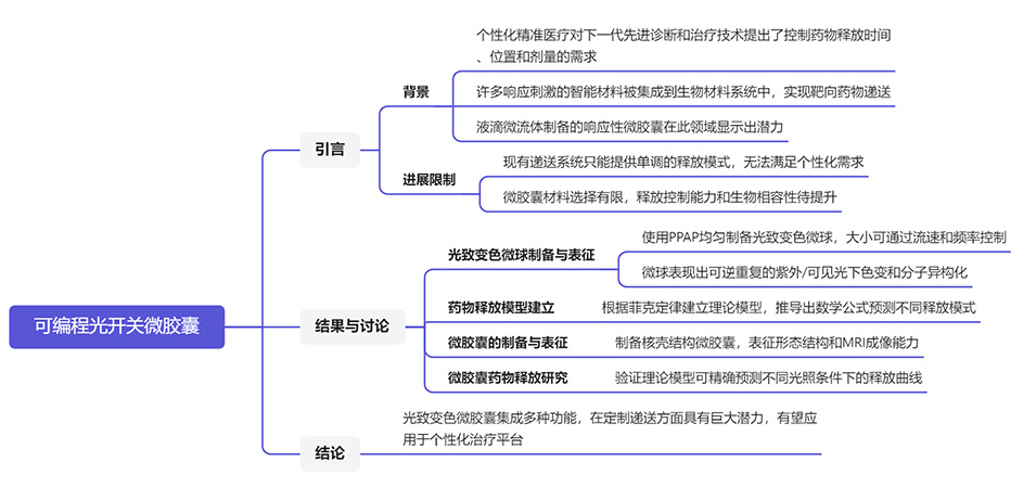 1、本研究介绍了一种新型可编程光开关微胶囊,能够实现精确和定制的药物释放。