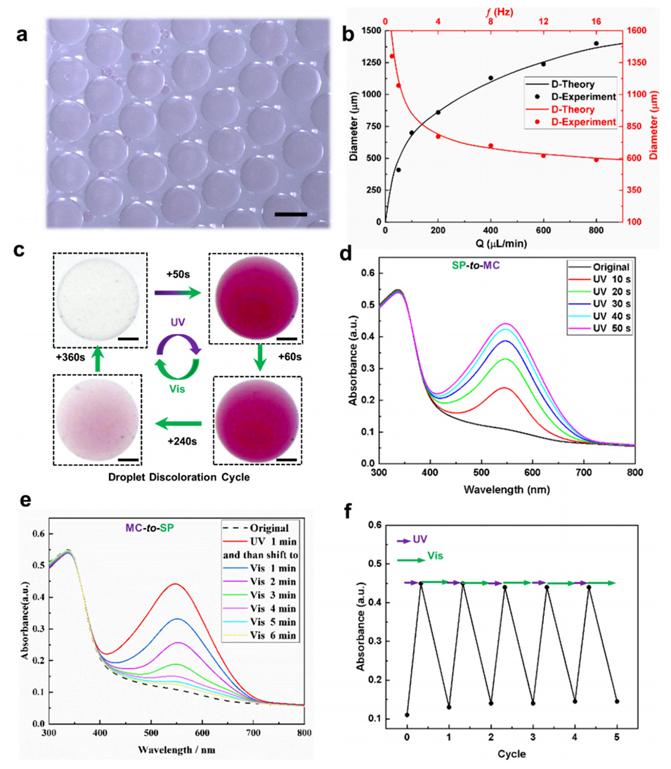 图3.光开关微滴和微球的表征。
