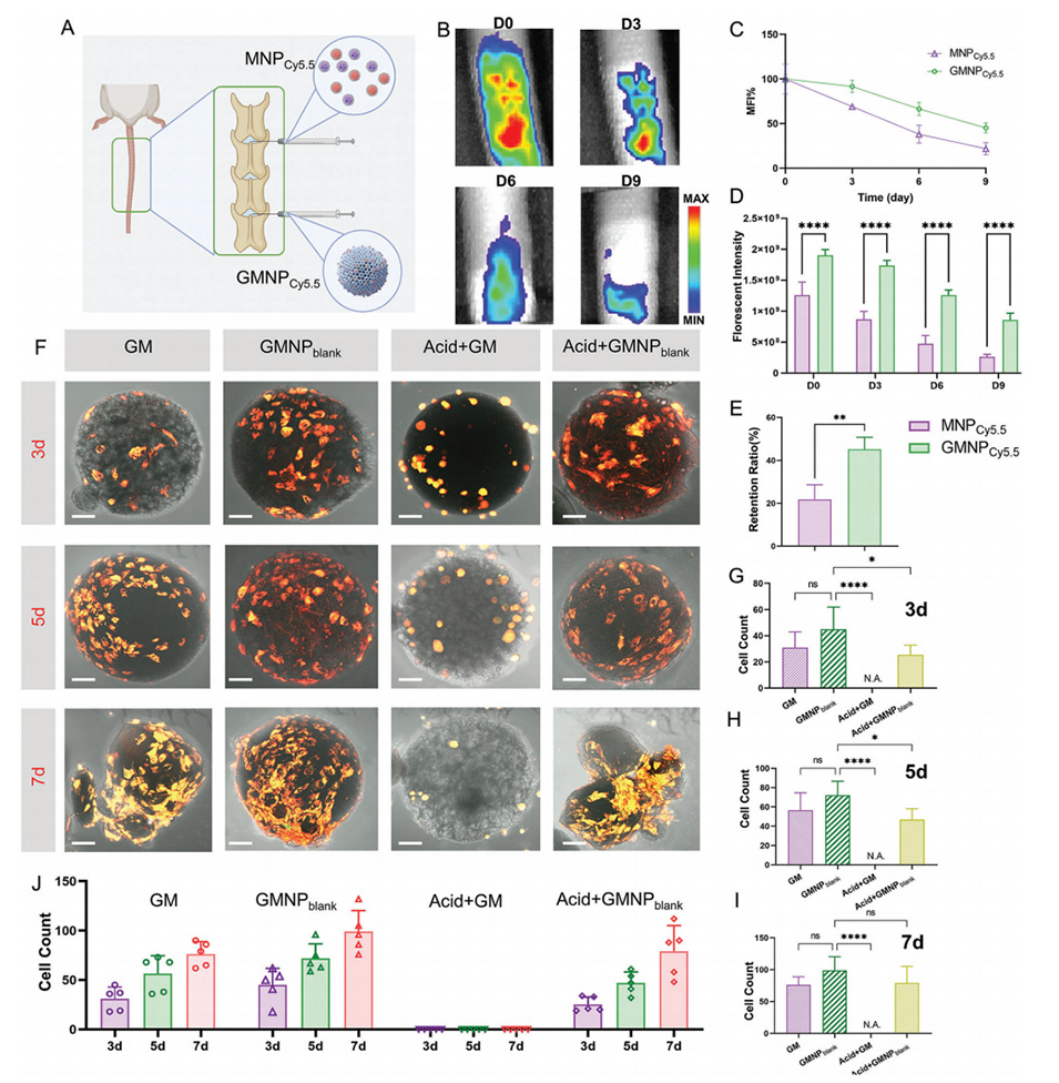 增强细胞外基质(ECM)的合成: 除了中和酸性微环境和抑制炎症反应外,GMNP 还能促进髓核细胞中 ECM 的合成。这对于维持组织完整性和促进衰老相关疾病的再生至关重要。