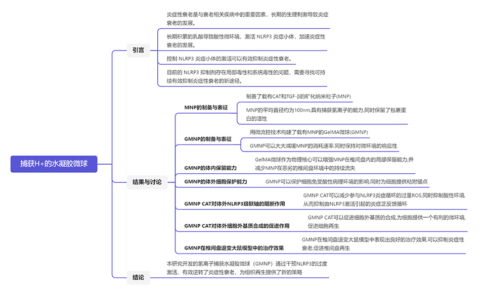 总之,捕获氢离子的水凝胶微球的功能是中和酸性,通过抑制 NLRP3 抑制炎症反应,以及增强 ECM 合成,最终促进组织再生和逆转炎症反应。