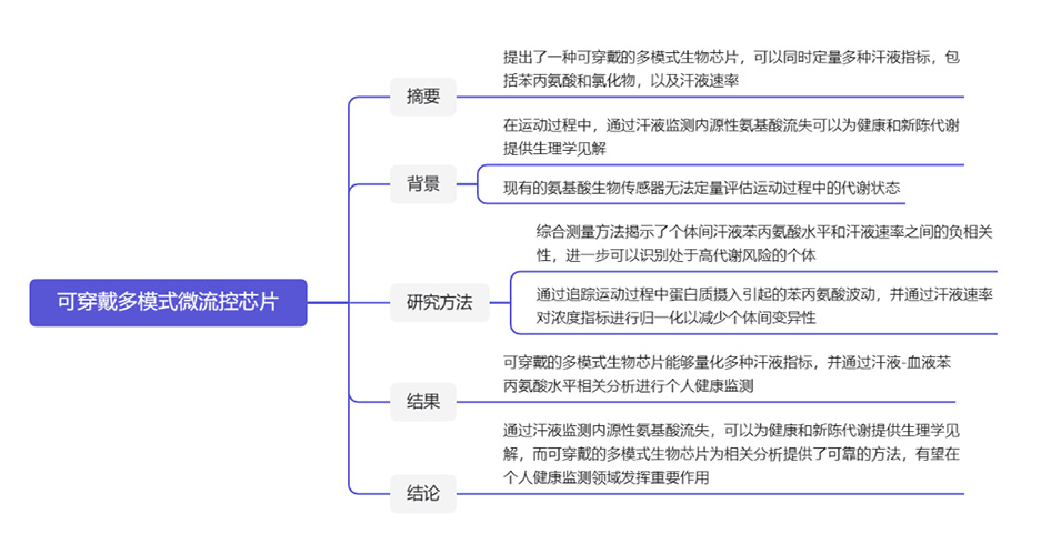 图1.通过汗液分析评估运动代谢风险和血清相关性的可穿戴多模态生物芯片示意图。