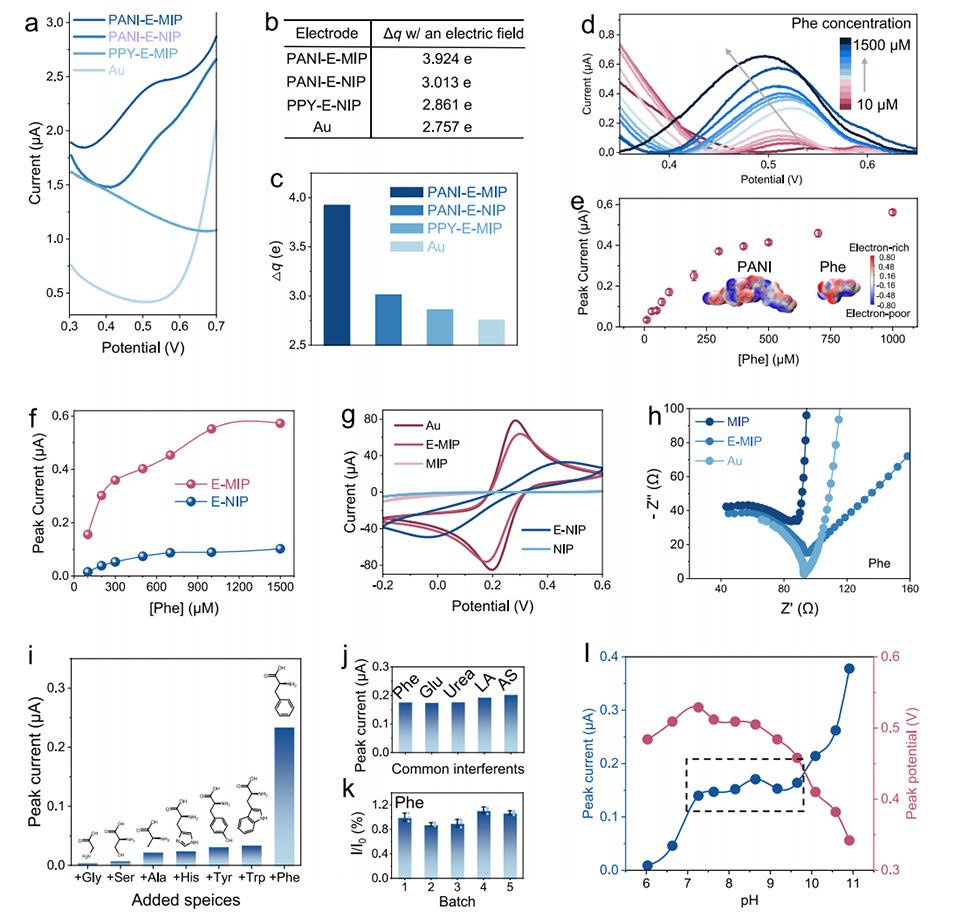 图2.用于检测Phe的E-MIP传感器的表征。