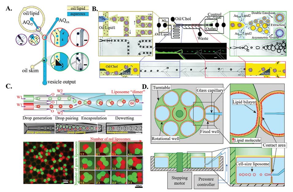 图2.使用非微流控技术形成脂质仿生模型的示例。