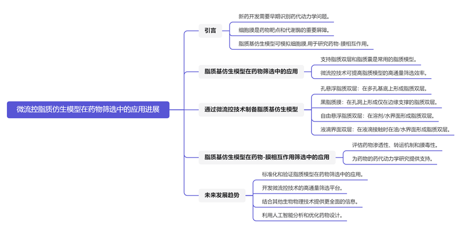 4、本文概述了两代脂质模型在药物筛选中的应用,详细介绍了微流控法制备模型的复杂性,并探讨了其在药物-膜相互作用筛选中的应用,最后对未来研究方向进行了批判性分析。