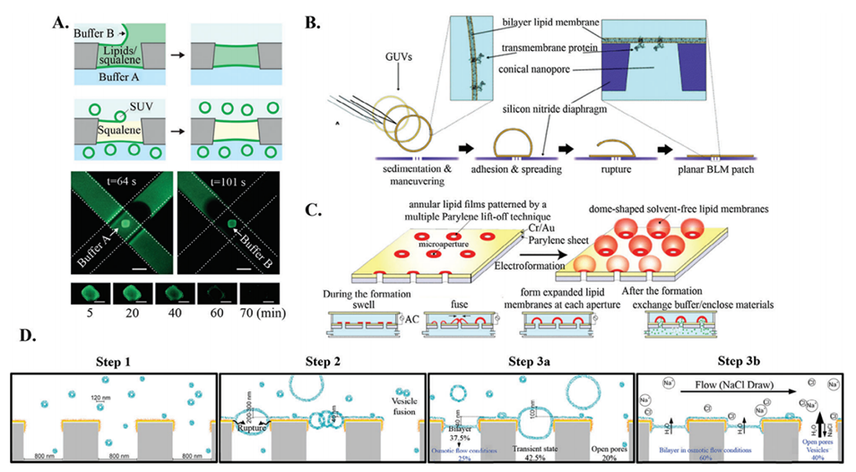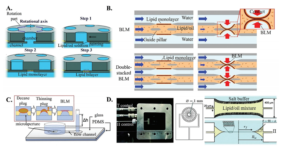 3、微流控技术可将传统脂质模型微型化,开发出新一代双层模型。