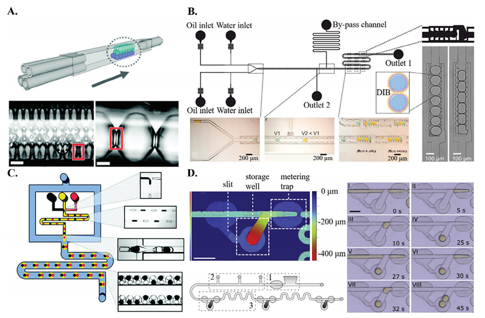 图8.在微流体中形成液滴界面双层(DIBs)。