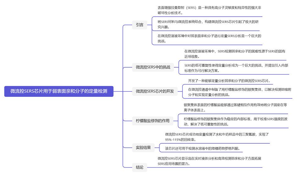 开发用于定量检测弱亲和力分子的微流体 SERS 材料的意义在于,它能够在流体环境中对与等离子表面亲和力弱的分子进行稳健而灵敏的分析。由于分析物对金属表面的吸附力较弱,拉曼截面较小,因此传统上难以对其进行检测和定量。