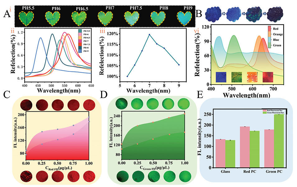 5、伤口的实时监测和管理:液体与PC膜的相互作用产生了独特的结构颜色和荧光增强,能够监测伤口中的炎症因子,并促进有效的伤口管理。