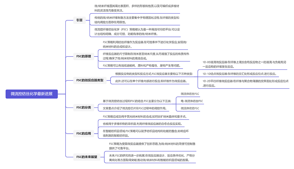1、微流控纤维纺丝化学(FSC)利用微流控芯片在纺丝过程中原位发生反应生成纳米纤维杂化材料,是合成和设计结构明确、成分可控、功能有序的微米/纳米级纤维的理想平台。