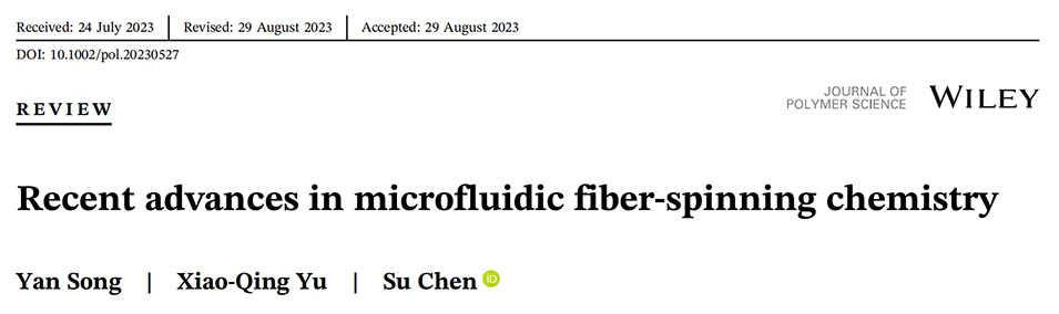 近期,南京工业大学陈苏教授发表综述,介绍了微流控纤维纺丝化学(FSC)的概念及应用,全面总结了FSC在制备机制和技术优势方面的最新进展,重点讨论了微流控芯片在FSC过程中的调节作用。此外,还概括了FSC策略在荧光纳米材料合成、多维纤维非织造布和全天候智能纺织品等方面的应用。相关研究成果以“Recent advances in microfluidic fiber-spinning chemistry”为题目,发表在期刊《Journal of Polymer Science》上。