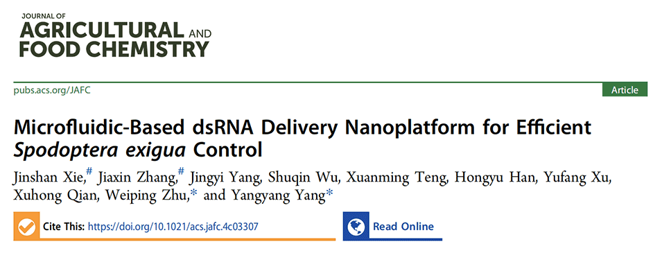 基于纳米技术的RNA干扰(RNAi)为病虫害防治提供了一种前景广阔的方法。然而,目前生产RNAi纳米杀虫剂的方法主要是批量生产,缺乏稳定的质量控制。近期,华东理工大学药学院朱维平教授&杨泱泱等人提出了一种基于微流控技术的纳米平台,用于连续制备均一、高效的脂质纳米颗粒包裹双链RNA纳米杀虫剂,以有效控制害虫甜菜夜蛾。相关研究以“Microfluidic-Based dsRNA Delivery Nanoplatform for Efficient Spodoptera exigua Control”为题目发表于期刊《Journal of Agricultural and Food Chemistry》