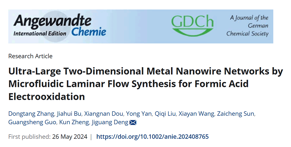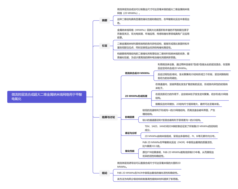 尽管二维金属纳米线网络(2D MNWNs)因其较大的比表面积和丰富的不饱和配位原子而受到研究人员的广泛关注,但其可控合成仍然是一个重大挑战。近期,北京工业大学邓积光团队开发了一种基于微流控层流的合成方法,能够轻松制备具有不同合金成分的大规模二维结构。相关研究以“Ultra-Large Two-Dimensional Metal Nanowire Networks by Microfluidic Laminar Flow Synthesis for Formic Acid Electrooxidation”为题目,发表在期刊《Angewandte Chemie International Edition》上。