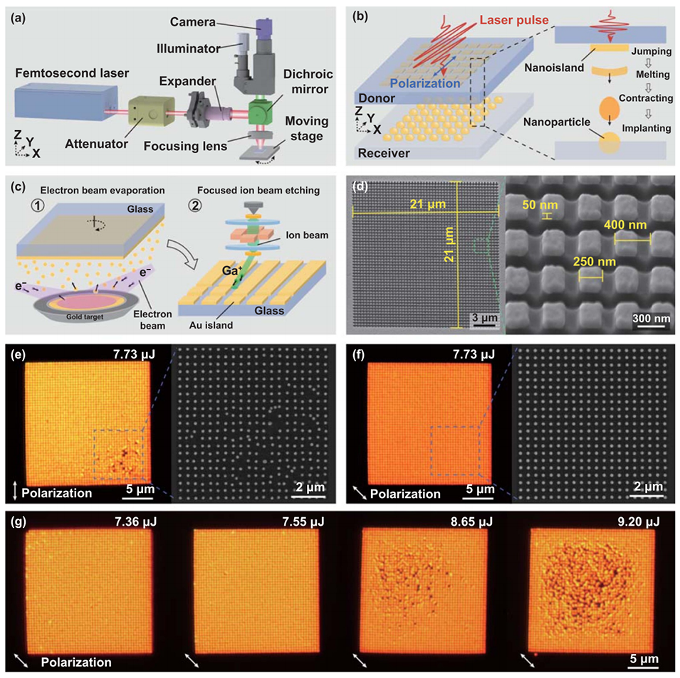 图1.利用飞秒激光在柔性基底上植入纳米粒子阵列。