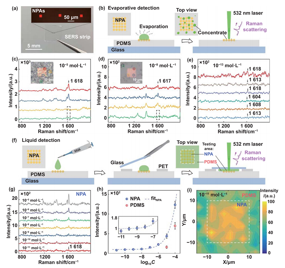 2、均匀的NPA转移:通过激光诱导技术,实现了金NPA在聚合物膜上的均匀正向转移,保证了SERS检测的一致性和重复性。