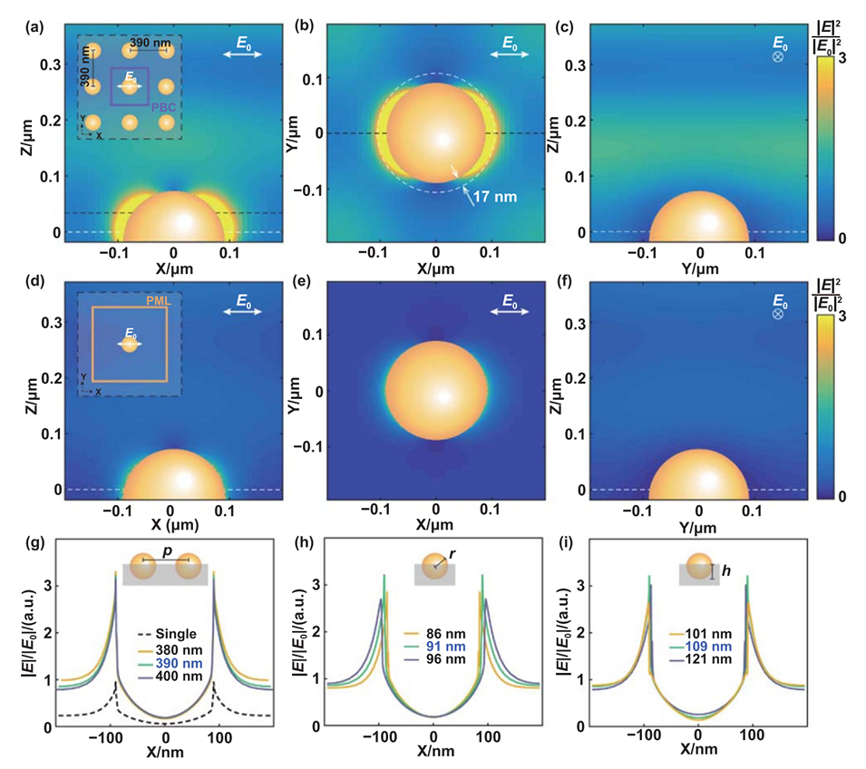 4、优化的纳米粒子设计:通过调整纳米粒子的几何参数(如直径、嵌入深度和排列间距),可以优化局部表面等离子体共振,进一步提高电磁场的增强效果。