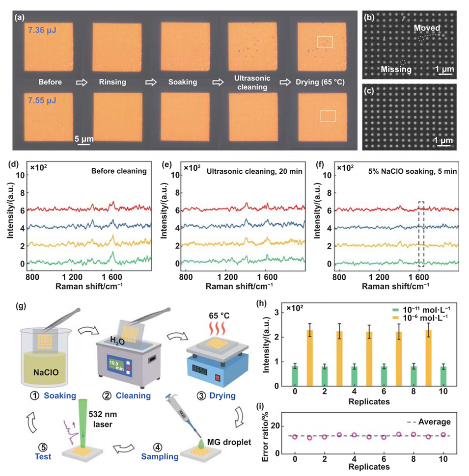 3、此外,Au-NPA条带在经过多次物理和化学清洗后展现出优异的可重复使用性,这归功于激光植入NPA在柔性基底中的牢固嵌入。