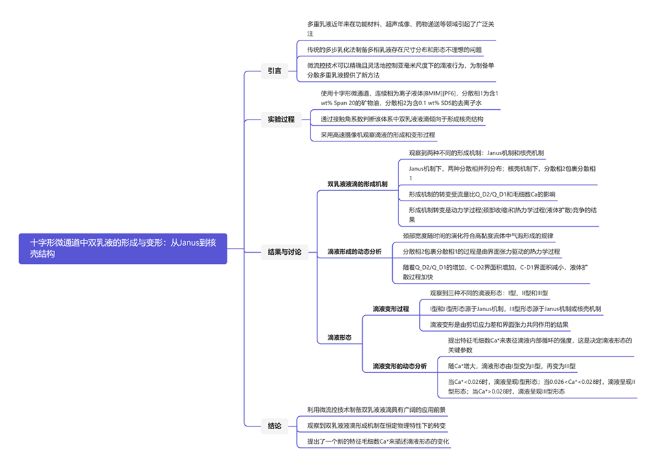 1、研究了十字形微通道中双乳液液滴的形成和变形过程。