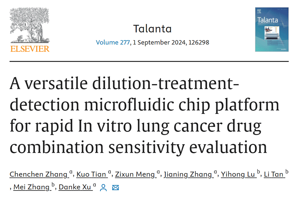 近期,南京大学许丹科教授团队提出了一种集成了稀释、处理和检测等所有过程的多功能微流控芯片平台,用于体外药物敏感性测定。相关研究以“A versatile dilution-treatment-detection microfluidic chip platform for rapid In vitro lung cancer drug combination sensitivity evaluation”为题目,发表于期刊《Talanta》。