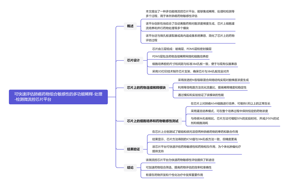 1、本研究提出了一种多功能微流控芯片平台,可集成稀释、处理和检测等所有过程,用于体外药物敏感性评估。