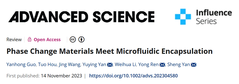 近期,深圳大学高等研究院闫昇研究员、宁波诺丁汉大学任勇副教授、英国诺丁汉大学阎玉英教授等人发表综述,概述了基于微流控的PCM封装技术的最新进展。首先阐述了利用微流控技术制备MEPCM胶囊/纤维的原理和方法,并对其热特性和微观结构进行了分析。随后,总结了MEPCM在建筑节能、纺织品、军用航空、太阳能利用和生物工程等领域的应用。最后,对MEPCM胶囊/纤维的发展前景进行了展望。相关研究成果以“Phase Change Materials Meet Microfluidic Encapsulation”为题目,发表在期刊《Advanced Science》上。