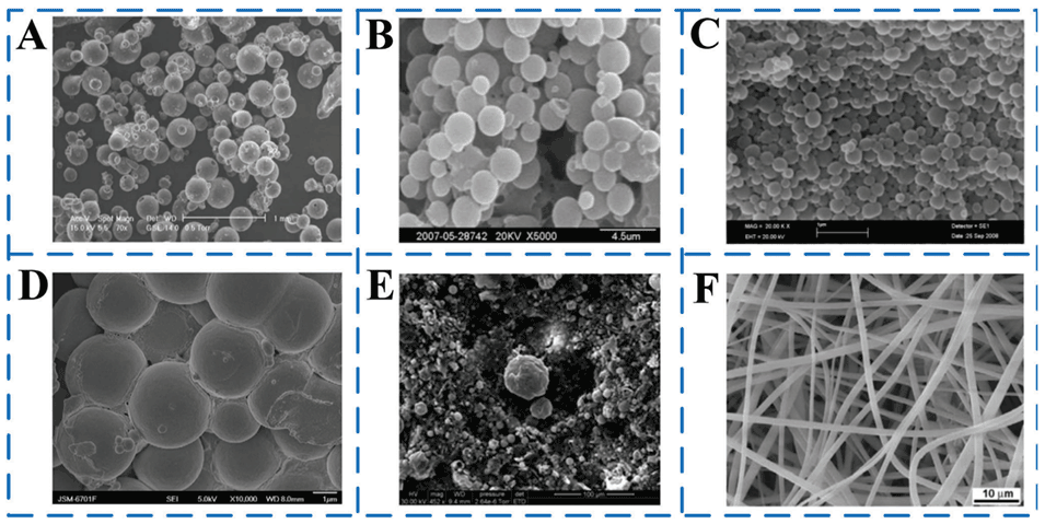 图10.通过传统方法制备的MEPCM胶囊/MEPCM纤维的扫描电镜显微照片