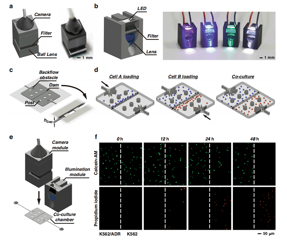 3、此外,还开发了各种模块化附件,包括阀门、光源和显微摄像头,可按需安装到芯片上。