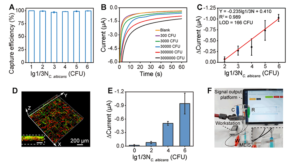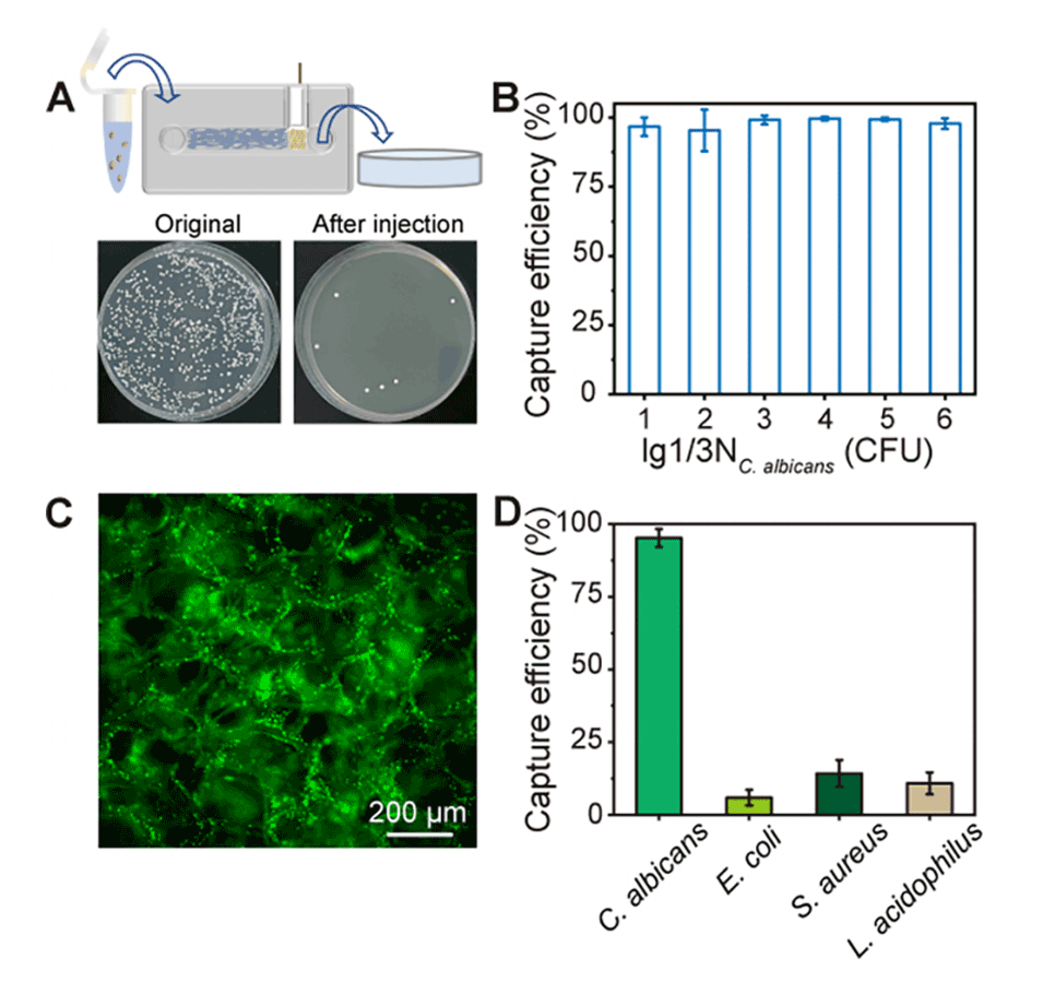 这种设计显著提升了对白色念珠菌的捕获效率,实现了超过95%的高效率分离。