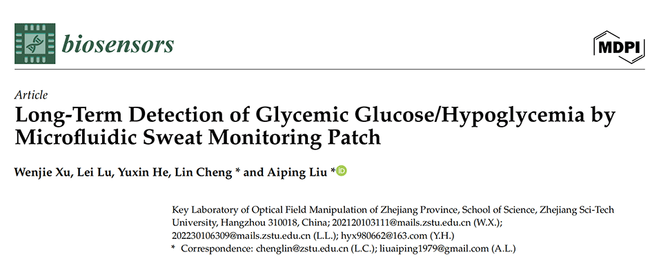 近日,浙江理工大学理学院刘爱萍教授团队开发了一种新型微流控汗液监测贴片,该贴片通过集成多层结构和创新的阀门设计,实现了对人体汗液中葡萄糖水平的长期、连续监测,为非侵入性血糖检测提供了一种有效工具。相关研究以“Long-Term Detection of Glycemic Glucose/Hypoglycemia by Microfluidic Sweat Monitoring Patch”为题目发表于期刊《Biosensors》。