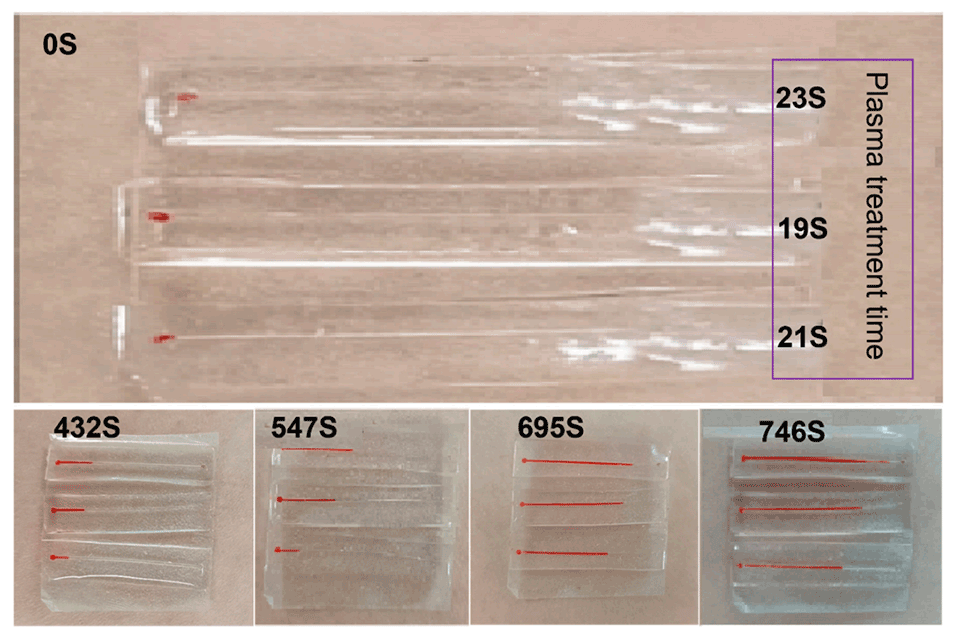 3、通过对PDMS材料进行不同时间的等离子体亲水处理,优化了微通道的亲水性,提高了汗液的流动效率。