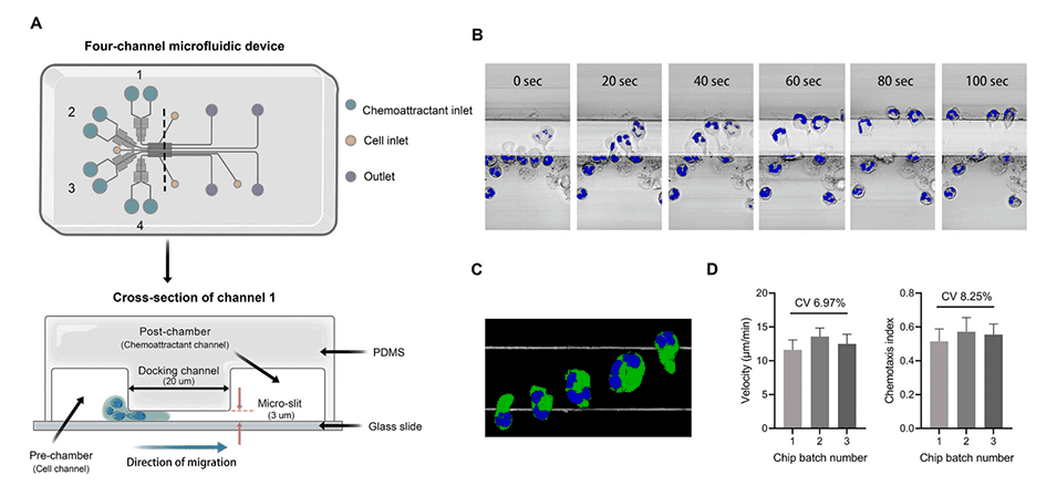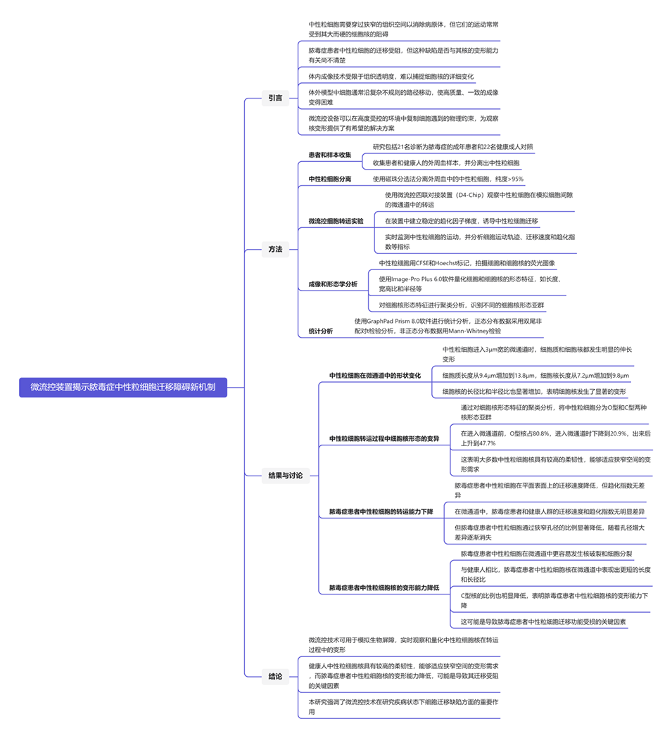3、实时观察:微流控设计使得研究者能够实时观察中性粒细胞的运动和核变形,提供了动态的细胞行为分析。