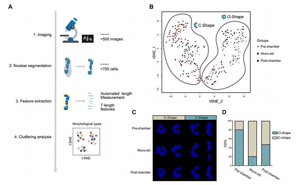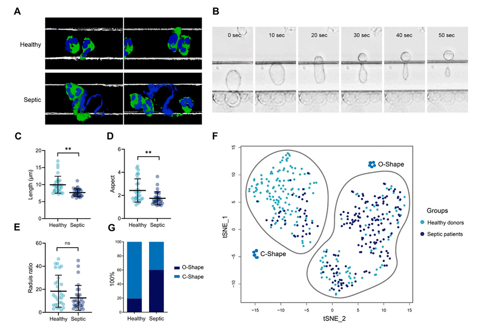 2、通过形态分析方法,量化了健康个体与脓毒症患者中性粒细胞核的变形能力。